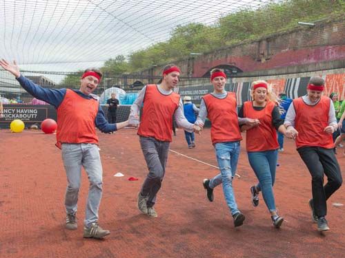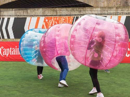 - Old school sports day, bubble football, bubble mayhen/m, dodgeball, archery tag, electric shock football, goggle football