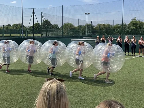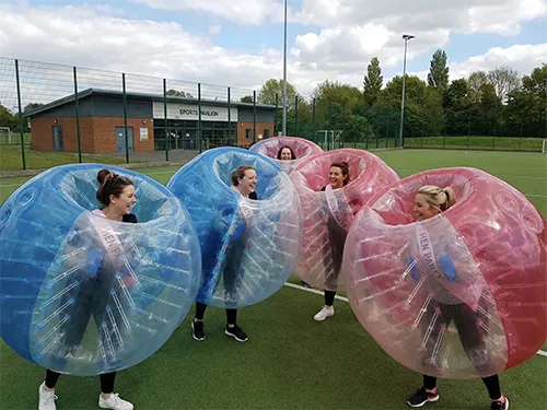 Everything you could need will be provided during our Bubble Mayhen in Manchester. We’re talking about a private venue, equipment, events coordinator and even a prize for the winning team. After a quick warm up, you will jump into your bubble suits and dive right into playing the competitive hen themed mini games in a race to bag your team as many points as possible. To keep things all about the bride-to-be, you’ll have a breather at halftime and play a Mr & Mrs Quiz!