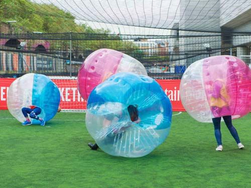You wear giant bubble suits and play various mini games smashing and bashing into each other. Each mini game has rules and opportunities to win, so there is something for everyone. Perfect for birthdays, get-togethers and team building events.